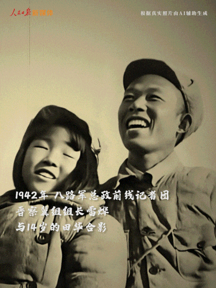 和14歲的田華合影