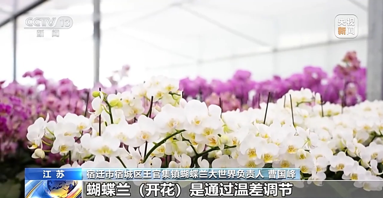 宿遷市宿城區(qū)王官集鎮(zhèn)蝴蝶蘭大世界負(fù)責(zé)人 曹國(guó)峰:其實(shí)蝴蝶蘭的自然花期應(yīng)該是農(nóng)歷年開始一直到“五一”,這是自然狀態(tài)?,F(xiàn)在我們通過技術(shù)干預(yù),想哪一天開就哪一天開。蝴蝶蘭開花是通過溫差調(diào)節(jié),這個(gè)時(shí)候我們就要用空調(diào),一些恒溫設(shè)備以及除濕設(shè)備進(jìn)行恒溫控制。