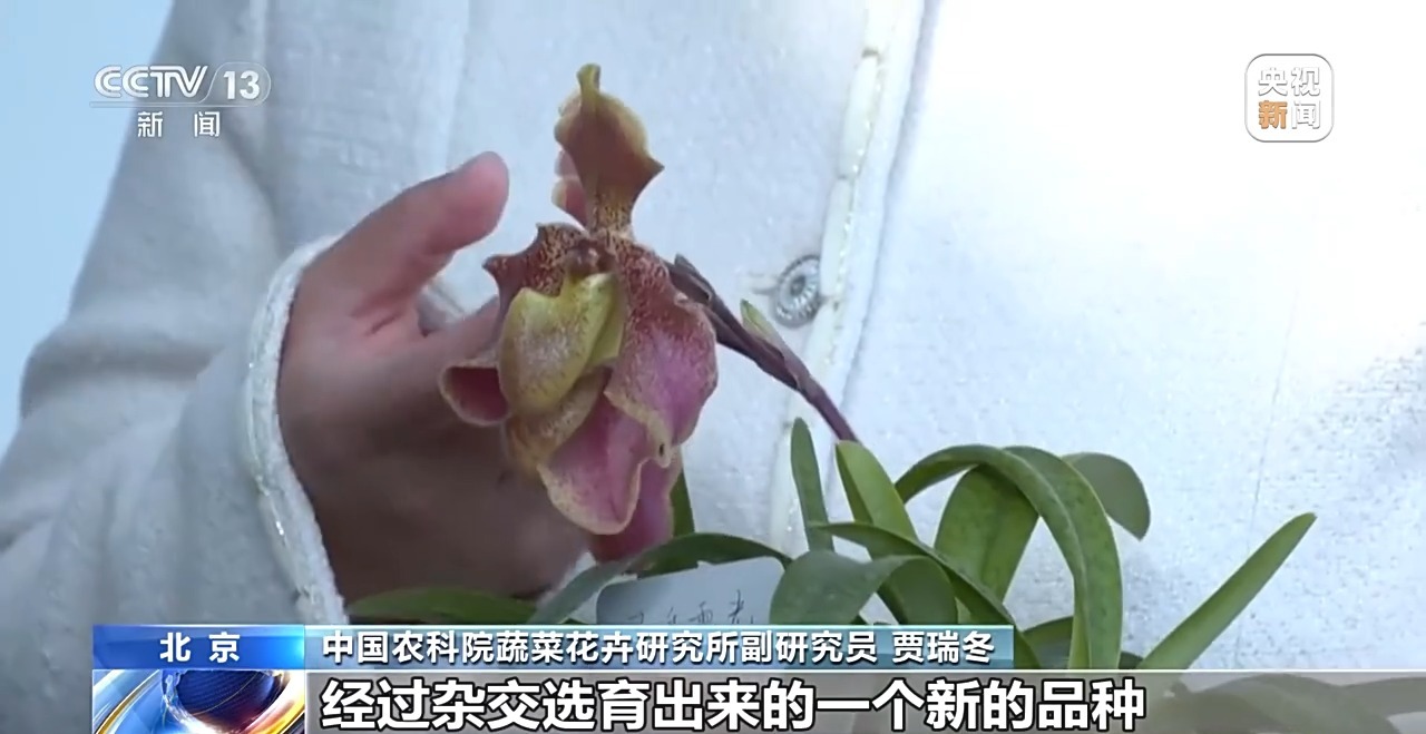 中國(guó)農(nóng)科院蔬菜花卉研究所副研究員 賈瑞冬:我們所做的工作就是怎么把物種繁殖利用起來。比如同色兜蘭和帶葉兜蘭經(jīng)過雜交選育出來的一個(gè)新的品種“靈秀霞光”,它的花兼具了同色兜蘭和帶葉兜蘭的優(yōu)點(diǎn),開不止一朵花,花瓣還比較厚,花比較大,花期會(huì)比較長(zhǎng)。