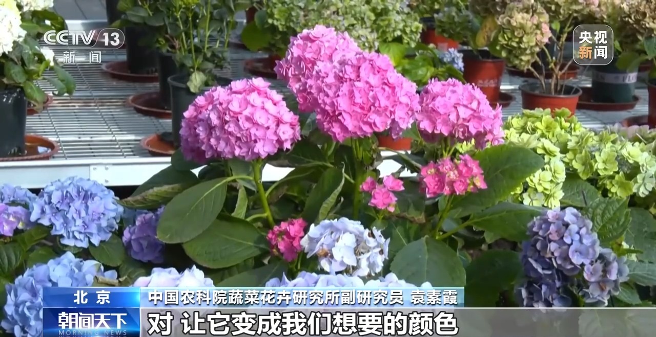 繡球被稱為植物中的變色龍,在中國(guó)農(nóng)科院的實(shí)驗(yàn)大棚里,粉色的花朵經(jīng)過科研人員的調(diào)控后,就會(huì)變成藍(lán)色稀有色,深受消費(fèi)者的喜愛。