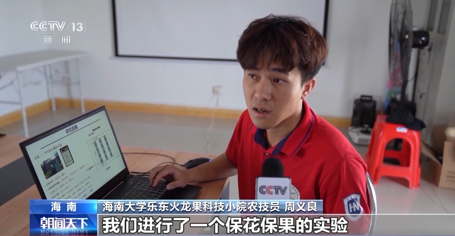 海南大學(xué)樂東火龍果科技小院農(nóng)技員 周義良:根據(jù)這個現(xiàn)狀,我們進(jìn)行了一個?;ū9膶嶒灒ㄟ^不同濃度的硼肥、氨基酸肥、授粉和溫度調(diào)控來進(jìn)行實驗,坐果率提升了20%左右。