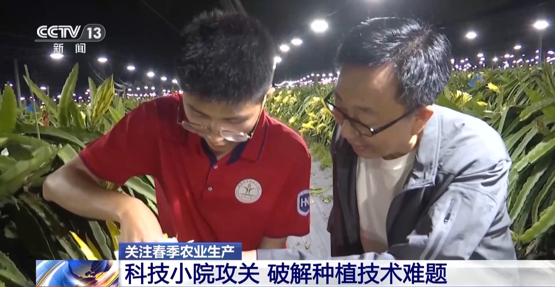 不僅僅是燕窩果,像傳統(tǒng)的熱帶水果火龍果的種植難題,也正在通過科技小院的技術(shù)得以攻破。晚上八點多,尖峰鎮(zhèn)方圓幾十里火龍果種植園區(qū)燈火通明,而夜晚點亮燈光的目的是給火龍果補(bǔ)光,讓枝條能夠長出花苞并順利開花?;瘕埞_花時間一般在晚上八點到十二點之間,為此科技小院的技術(shù)人員還研發(fā)了可以短時間完成授粉的技術(shù)模式。