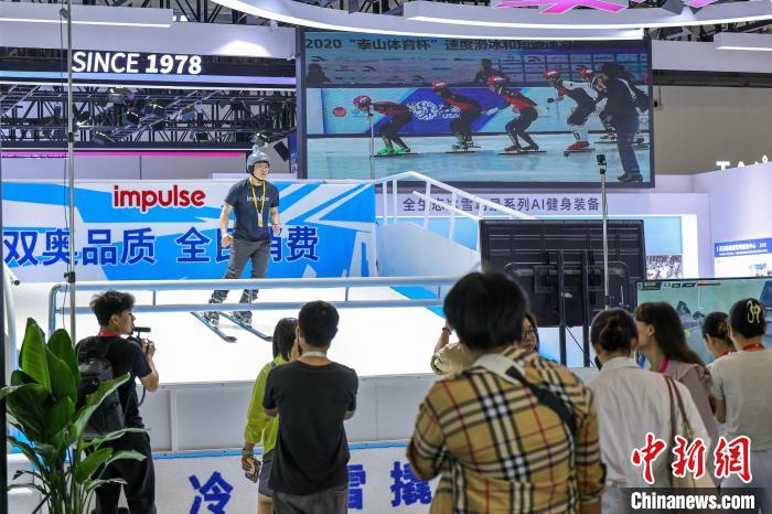 4月11日,第五屆中國(guó)國(guó)際消費(fèi)品博覽會(huì)即將開(kāi)展,企業(yè)推出具有AI功能的滑雪模擬機(jī)。中新社記者 駱云飛 攝