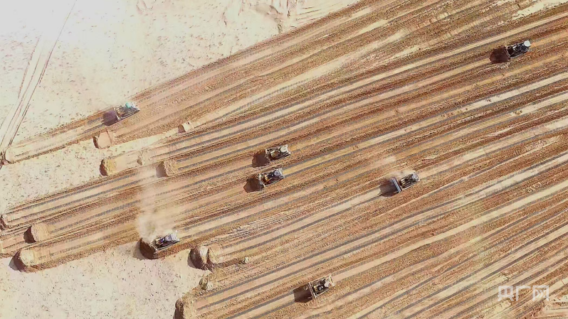 “民豐縣經(jīng)過無數(shù)次試驗,選擇蘆葦鋪設草方格沙障,帶動了蘆葦收割產(chǎn)業(yè),參與收割的農(nóng)牧民人均增收7740元左右。”賈磊說。