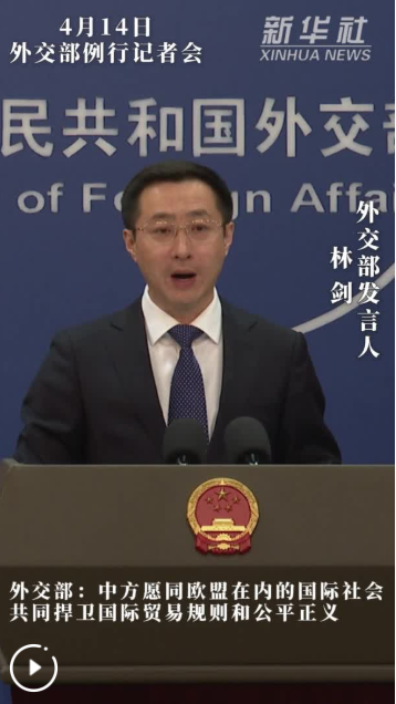 當(dāng)日例行記者會上,有記者問:當(dāng)前,全世界都非常關(guān)注特朗普政府對全球各國加征關(guān)稅造成的破壞性影響,中國和歐盟是全球主要經(jīng)濟(jì)體,近期中歐之間高層交往很多,請介紹雙方就美國加征關(guān)稅進(jìn)行溝通協(xié)調(diào)的情況。