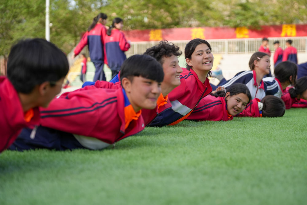↑4月10日,在阿圖什市硝魯克中學(xué),隊員們在進(jìn)行訓(xùn)練。新華社記者 徐宏巖 攝