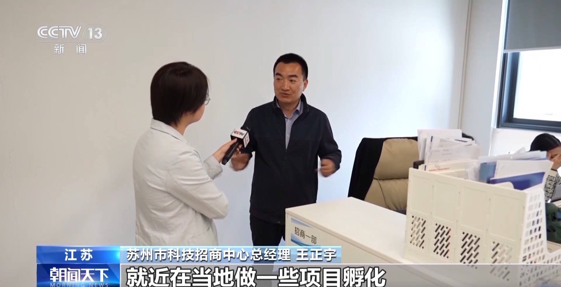 蘇州市科技招商中心總經(jīng)理 王正宇:方便這些高校的老師跟研究生,就近在當?shù)刈鲆恍╉椖康姆趸?。我們匹配一些載體、政策,包括資金的支持,條件成熟的時候,我們再讓他到蘇州來落地發(fā)展。