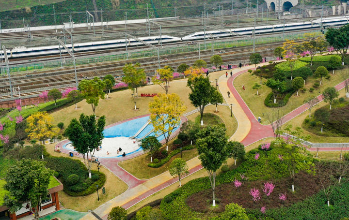 陽春三月、百花爭(zhēng)艷,兩江新區(qū)木桃路社區(qū)公園因靠近鐵路,形成了“開往春天的列車”的獨(dú)特景觀,引來不少市民拍照?!斑^去這里是個(gè)建筑棄渣場(chǎng),社區(qū)周邊沒有休閑的地方。經(jīng)改造變成了高低錯(cuò)落的山地公園,兒童樂園、健身步道、飲水等設(shè)施都有,我們現(xiàn)在散步健身有了好地方。”住在附近的鄒女士滿意地說。