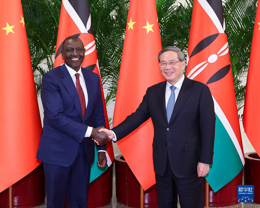 李強(qiáng)指出,中肯經(jīng)濟(jì)互補(bǔ)性強(qiáng),合作空間廣闊。中方愿同肯方繼續(xù)高質(zhì)量共建“一帶一路”,扎實(shí)推進(jìn)基礎(chǔ)設(shè)施等重大項(xiàng)目,深化金融、數(shù)字經(jīng)濟(jì)、綠色能源、農(nóng)業(yè)科技、藍(lán)色經(jīng)濟(jì)等領(lǐng)域合作,共同培育壯大發(fā)展新動(dòng)能,推動(dòng)取得更多實(shí)際成果。中方愿進(jìn)口肯方更多優(yōu)質(zhì)產(chǎn)品,促進(jìn)兩國(guó)貿(mào)易優(yōu)化平衡發(fā)展。雙方要進(jìn)一步便利人員往來(lái),加強(qiáng)文化、旅游、媒體等領(lǐng)域合作,推動(dòng)世界文明交流互鑒,增進(jìn)理解、友誼與信任。當(dāng)前國(guó)際形勢(shì)變亂交織,中國(guó)和非洲作為全球南方重要力量,應(yīng)更加緊密團(tuán)結(jié)協(xié)作,共同應(yīng)對(duì)困難挑戰(zhàn),攜手促進(jìn)發(fā)展繁榮。中國(guó)愿同肯尼亞等非洲各國(guó)一道努力,全面加速落實(shí)中非合作論壇北京峰會(huì)成果特別是“十大伙伴行動(dòng)”,踐行真正的多邊主義,以新時(shí)代全天候中非命運(yùn)共同體建設(shè)帶動(dòng)全球南方合作深化發(fā)展,引領(lǐng)和推動(dòng)構(gòu)建人類命運(yùn)共同體。