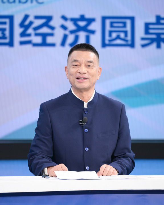 中國國際經(jīng)濟交流中心資深專家委員朱民在第十五期“中國經(jīng)濟圓桌會”錄制現(xiàn)場發(fā)言。新華社記者 李賀 攝