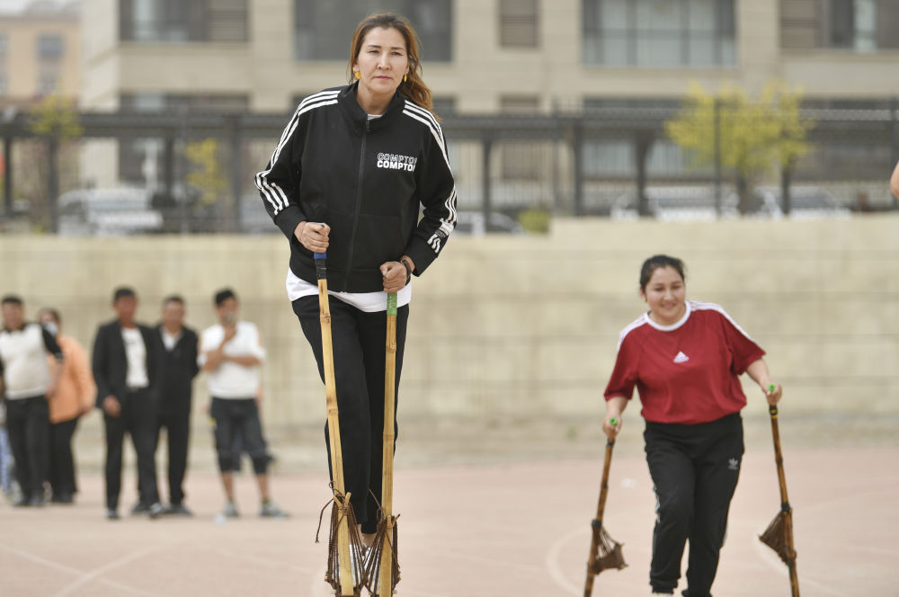 從上學(xué)時(shí),柔鮮古麗就熱衷于參與各項(xiàng)體育活動(dòng)。無(wú)論是籃球、排球還是最擅長(zhǎng)的高腳競(jìng)速,她總會(huì)擠出時(shí)間報(bào)名參賽。她說(shuō),體育就像一道光,多年來(lái)照亮了大漠邊緣的生活。“它不僅可以鍛煉身體,也能舒緩我在生活中遇到的壓力?!?/p>