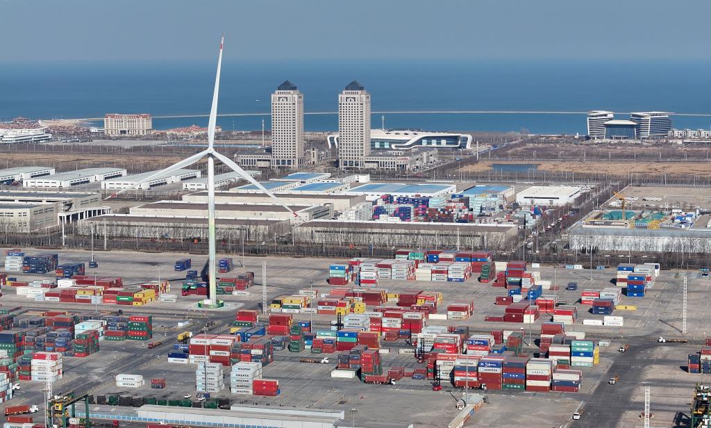 2024年3月20日拍攝的天津自貿試驗區(qū)東疆片區(qū)一景(無人機照片)。新華社記者趙子碩 攝