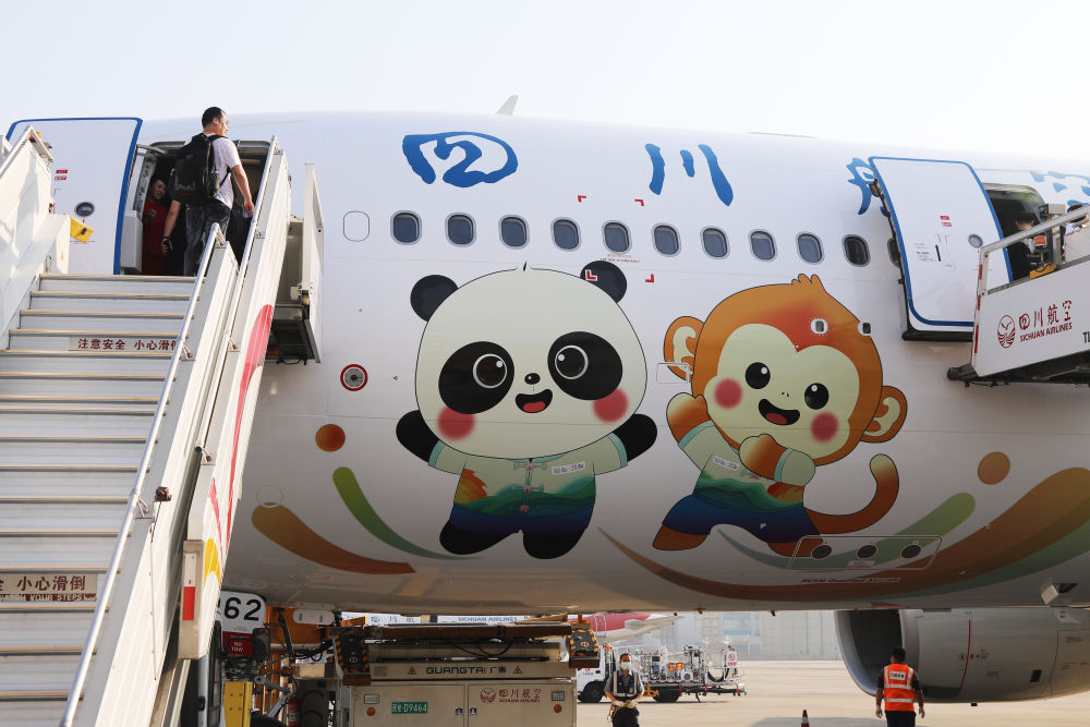 藍(lán)天白云之上,一架噴涂著成都世運(yùn)會(huì)吉祥物“蜀寶”“錦仔”的空客A330寬體客機(jī),在萬眾矚目中一飛沖天……4月18日,四川航空首架“成都世運(yùn)號(hào)”主題涂裝飛機(jī)首航。擁有2300多年建城史的成都,正以創(chuàng)新精神和飽滿熱情,在“家門口”迎接世運(yùn)會(huì)這一國(guó)際體育盛會(huì)的到來。