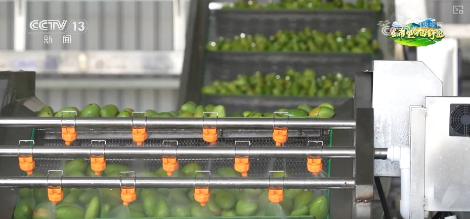 2025年,當(dāng)?shù)亟ǔ赏懂a(chǎn)的冷鏈園區(qū),配備了2條全自動(dòng)化分揀產(chǎn)線,從清洗、溫燙、分揀分級(jí)到打包、裝車,全流程自動(dòng)化作業(yè),人力成本降低80%,可以讓芒果采摘后爭(zhēng)分奪秒地?fù)屨际袌?chǎng)。同時(shí),依托氣調(diào)保鮮技術(shù),冷庫可將芒果保鮮期延長(zhǎng)至1個(gè)月以上。