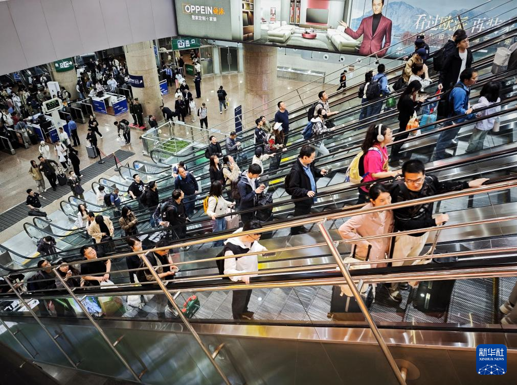 4月30日,旅客在南京火車站乘車出行。新華社發(fā)(蘇陽(yáng) 攝)