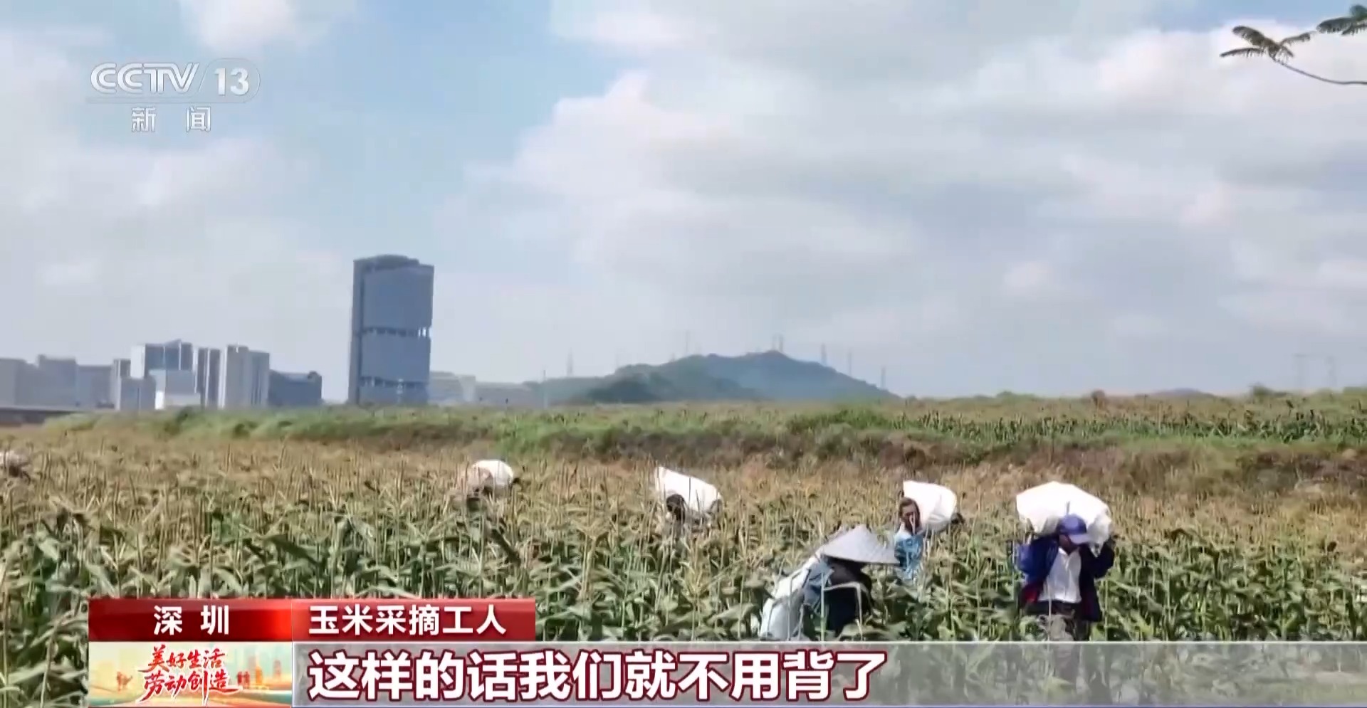 總臺央視記者 張春玲:在深圳光明區(qū),2000畝的玉米地都已經(jīng)成熟了,這次我的工作當(dāng)中有了一個(gè)新搭子——采摘小車。