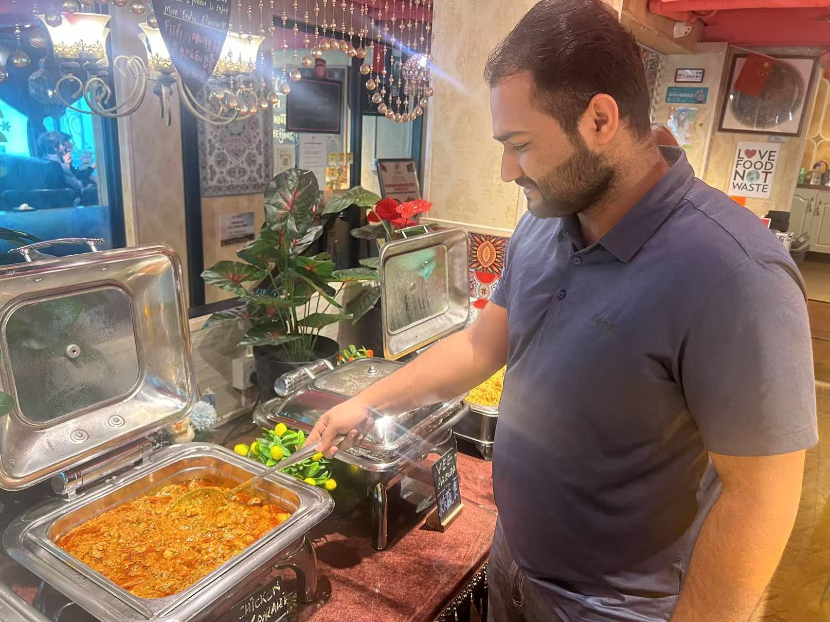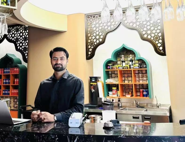 我們在中國的網(wǎng)絡(luò)平臺上都會發(fā)送電子優(yōu)惠券,也有一些排行榜把我們店放上去,所以中國消費者就會特意過來嘗試。我們有時也有學(xué)生折扣、會員卡的活動。得益于中國的‘過境免簽’政策,我們店里有了更多的外國游客,一些外國游客可能不會用電子優(yōu)惠券,我們也有一些實體店的優(yōu)惠活動。最近中國的一些‘促消費’活動我們也參加了,比如在美食節(jié)攤位上展示巴基斯坦美食,讓大家都嘗嘗。對于我們來說,不僅僅宣傳了我們的美食,還可以宣傳巴基斯坦文化?,F(xiàn)在我們在成都剛開了一家新店,未來我們還想在西安也開一家。