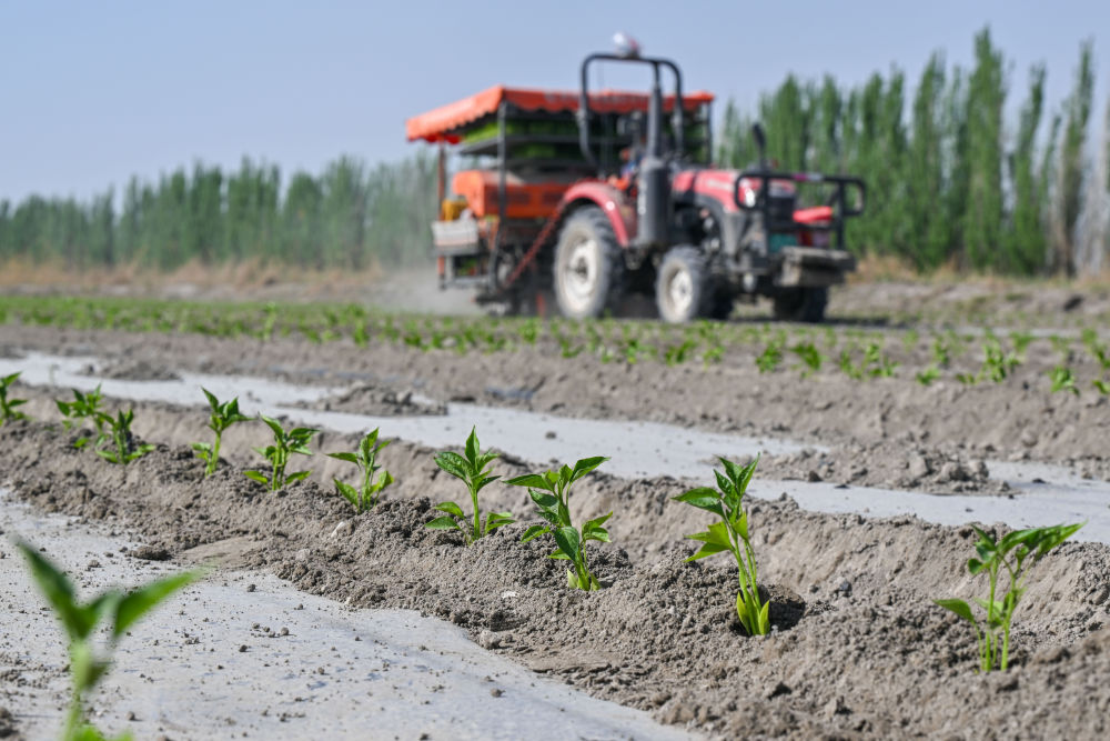 一場春雨不期而至,打濕地皮也“染”綠樹梢,天山南麓遲來的春意更加肆意蔓延。踏上田壟,透過綠茵般的麥田遠(yuǎn)遠(yuǎn)望去,一臺(tái)臺(tái)辣椒自動(dòng)移栽機(jī)正筆直地駛過田野,播下兩行嫩綠的辣椒苗后,蕩起一縷微塵。