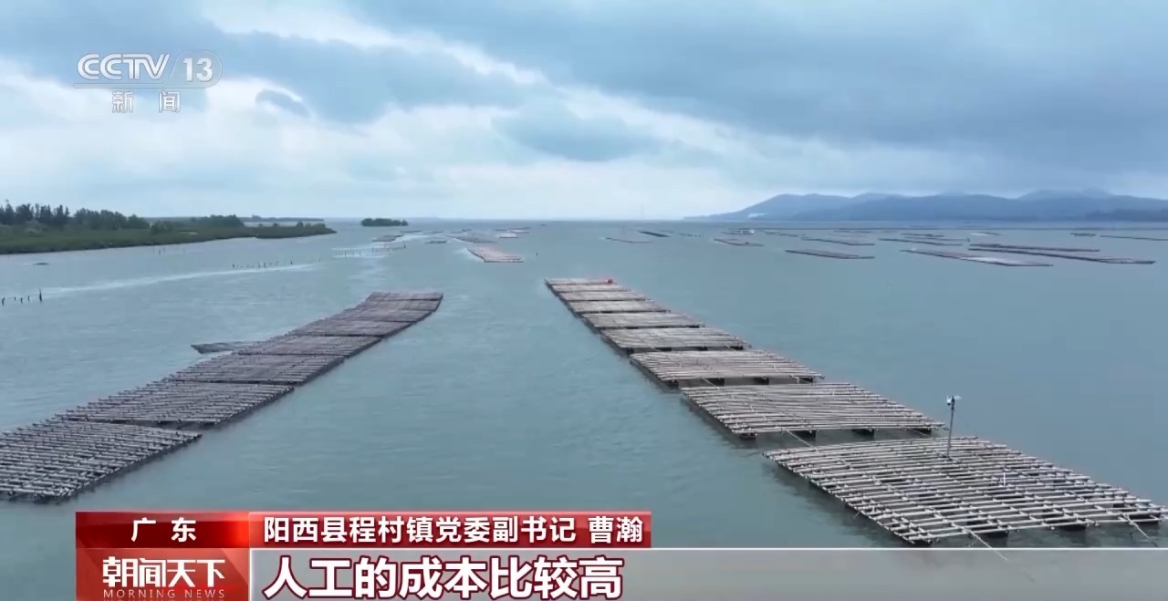 陽西縣程村鎮(zhèn)黨委副書記 曹瀚:以前的立柱式養(yǎng)殖必須要有水泥樁,還要打樁進去,人工的成本比較高。延繩吊養(yǎng)生蠔的時候,我們能夠及時根據(jù)海水咸濕度情況進行轉(zhuǎn)移,有利于蠔盡快長大。