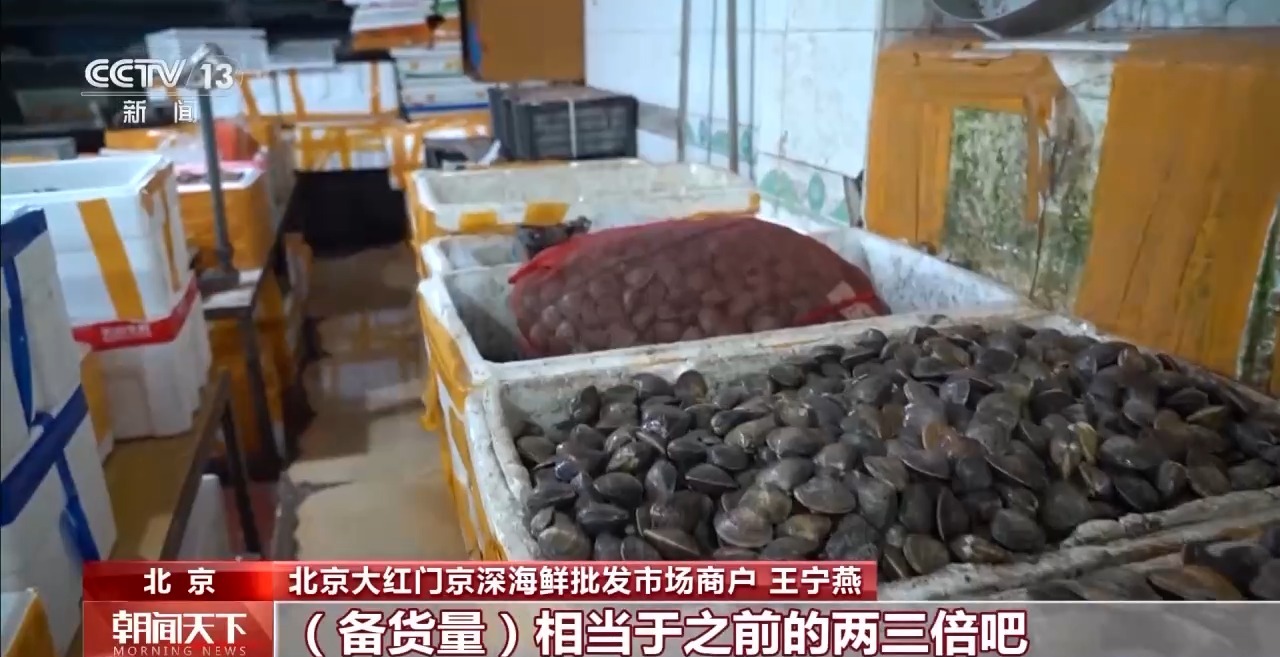 北京大紅門京深海鮮批發(fā)市場商戶 王寧燕:根據(jù)“五一”的情況,扇貝、生蠔這種適合聚餐的,我們會多備一點,備貨量相當(dāng)于之前的兩三倍吧。