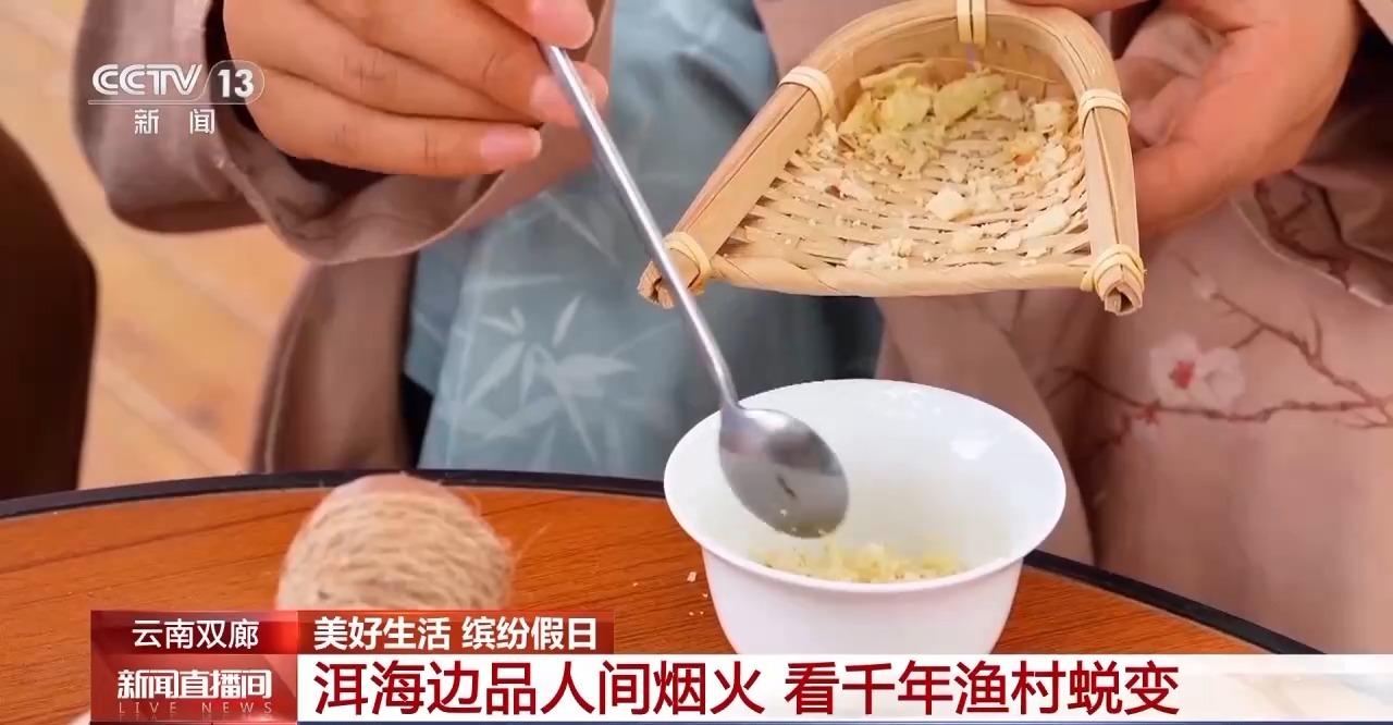 在云南大理雙廊,您既可以來一曲暢快的非遺舞蹈霸王鞭;也可以面朝洱海,品一品流傳千年的白族三道茶。本地乳扇和米花,漾濞的核桃仁,配上老紅糖水,這不是奶茶,而是“甜茶”。乳扇和米花是必選項,其他材料隨心搭配,喝下去清甜可口。在第三道茶“回味茶”中,花椒、姜片、桂皮與茶葉同煮,看起來有些“黑暗料理”,但這是云南普洱茶最早的飲用方式,諸味俱全,回味無窮。