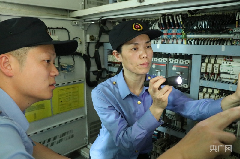 吳園梅和徒弟正在檢修車輛(央廣網(wǎng)記者 劉培俊 攝)
