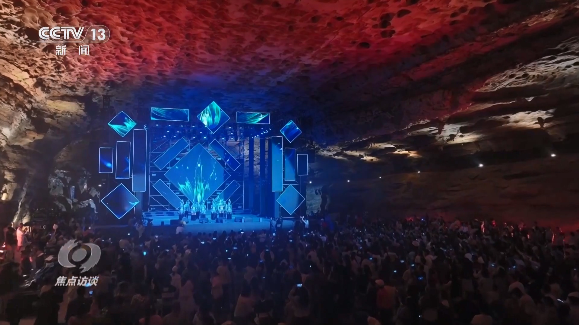 貴州綏陽縣溫泉鎮(zhèn),因溶洞喀斯特地貌資源豐富,假期里當(dāng)?shù)貙⒁魳窌鞍徇M(jìn)”了溶洞,專業(yè)音響系統(tǒng)被布置在鐘乳石群間,使音樂既能保留原聲質(zhì)感,又能疊加洞穴獨有的空靈回響。洞中主舞臺還引入全息投影技術(shù),將銀河系動態(tài)光影投射在億萬年形成的洞頂巖壁上,營造“地心音樂會”的奇幻氛圍。