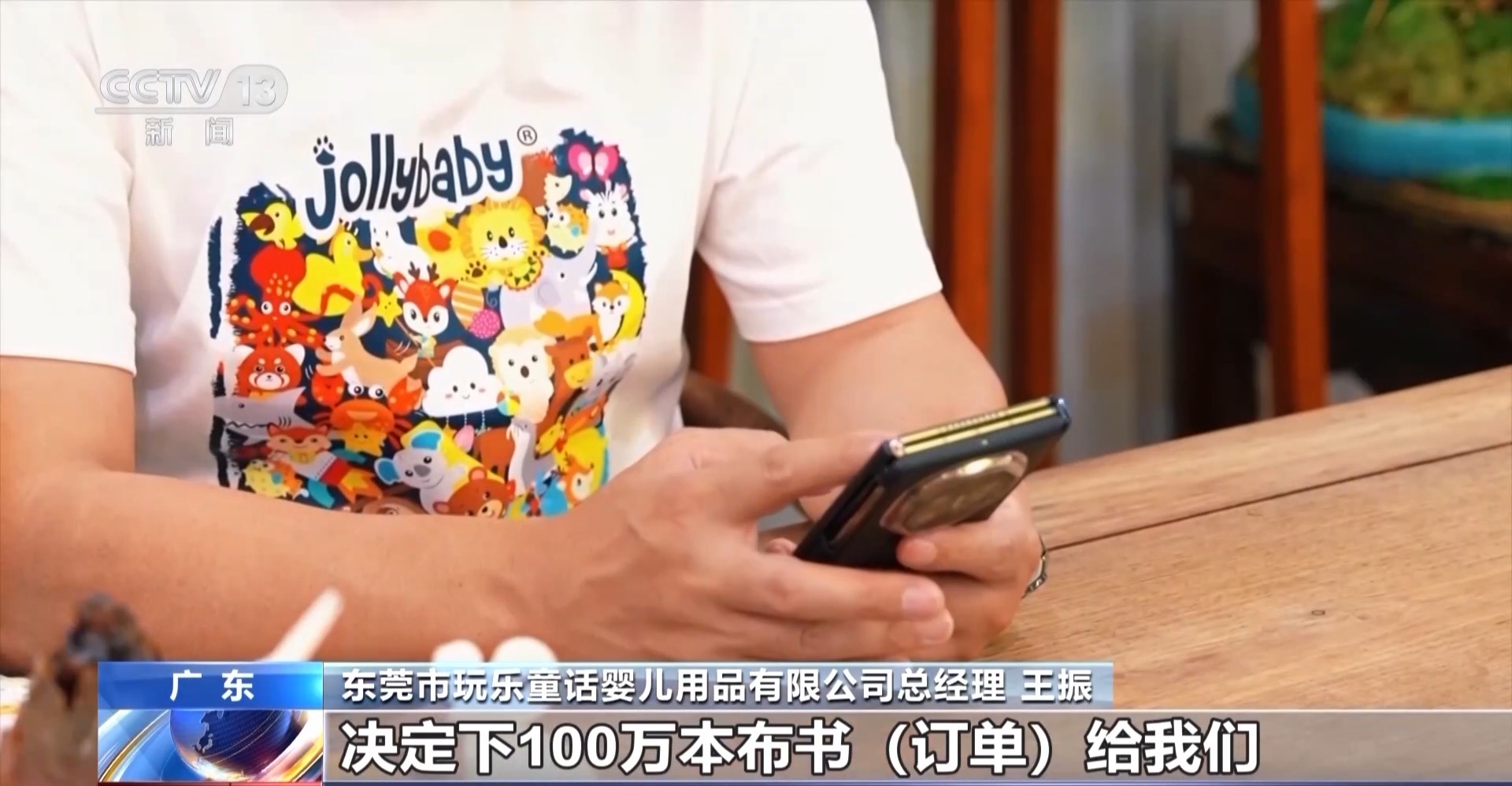 東莞市玩樂(lè)童話(huà)嬰兒用品有限公司總經(jīng)理 王振:到晚上12點(diǎn)多他們就發(fā)信息給我,決定在我們這里下100萬(wàn)本布書(shū)訂單,當(dāng)時(shí)我們大家非常非常興奮。