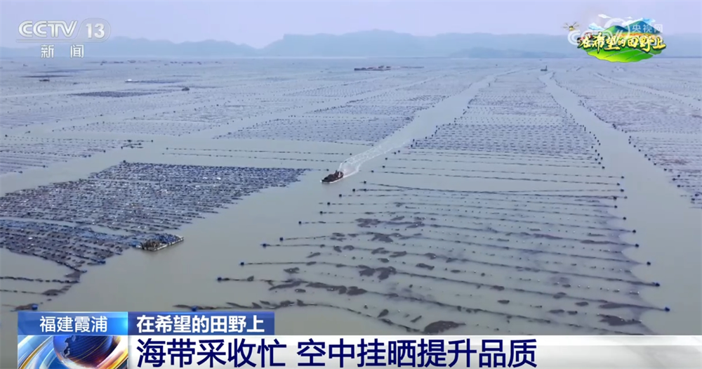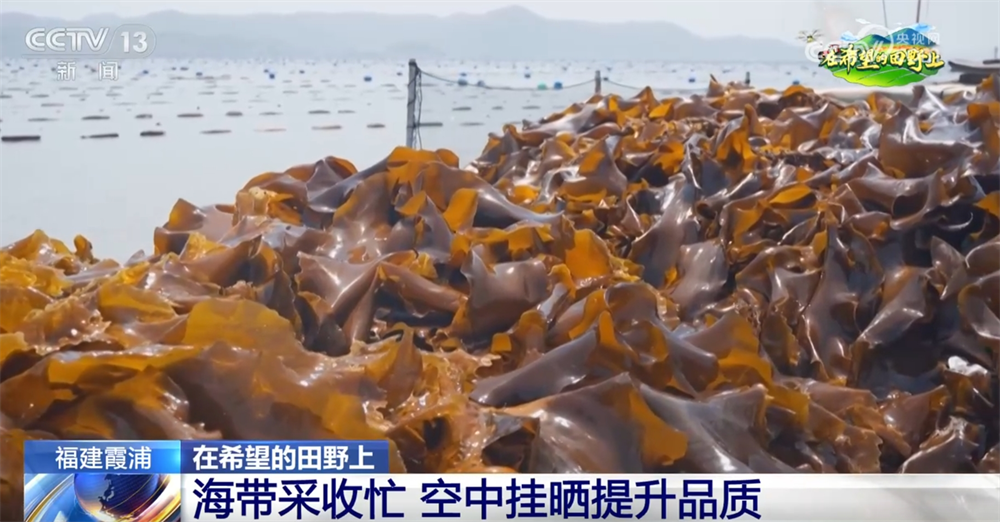 福建寧德市霞浦縣被譽為“中國海帶之鄉(xiāng)”,是我國海帶的主產區(qū)之一。這幾天,當地的15萬畝海帶迎來豐收,養(yǎng)殖戶們忙著將成品海帶收獲上岸,再運送到晾曬場晾曬,形成了獨特的“空中曬場”。