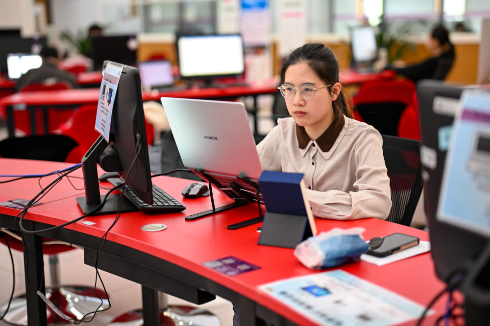 5月7日,在南開大學津南校區(qū),楊雅麗在圖書館修改論文。