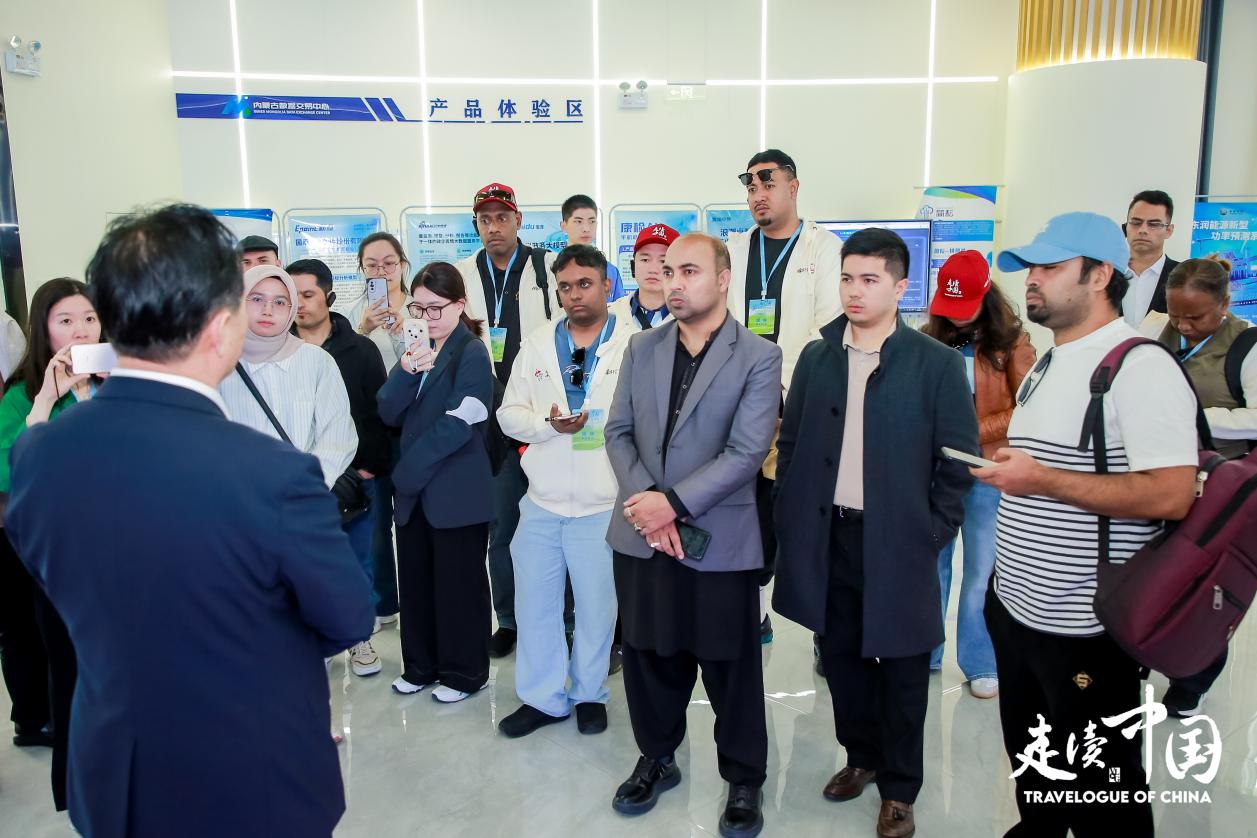 《喀布爾時(shí)報(bào)》總編尼克馬爾(中)在烏蘭察布(京蒙)人才科創(chuàng)園展廳仔細(xì)了解相關(guān)介紹