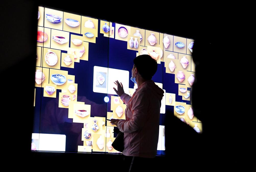 2024年9月24日,參觀者在河南仰韶文化博物館運(yùn)用多點(diǎn)觸控技術(shù)了解文物。新華社記者 郝源 攝