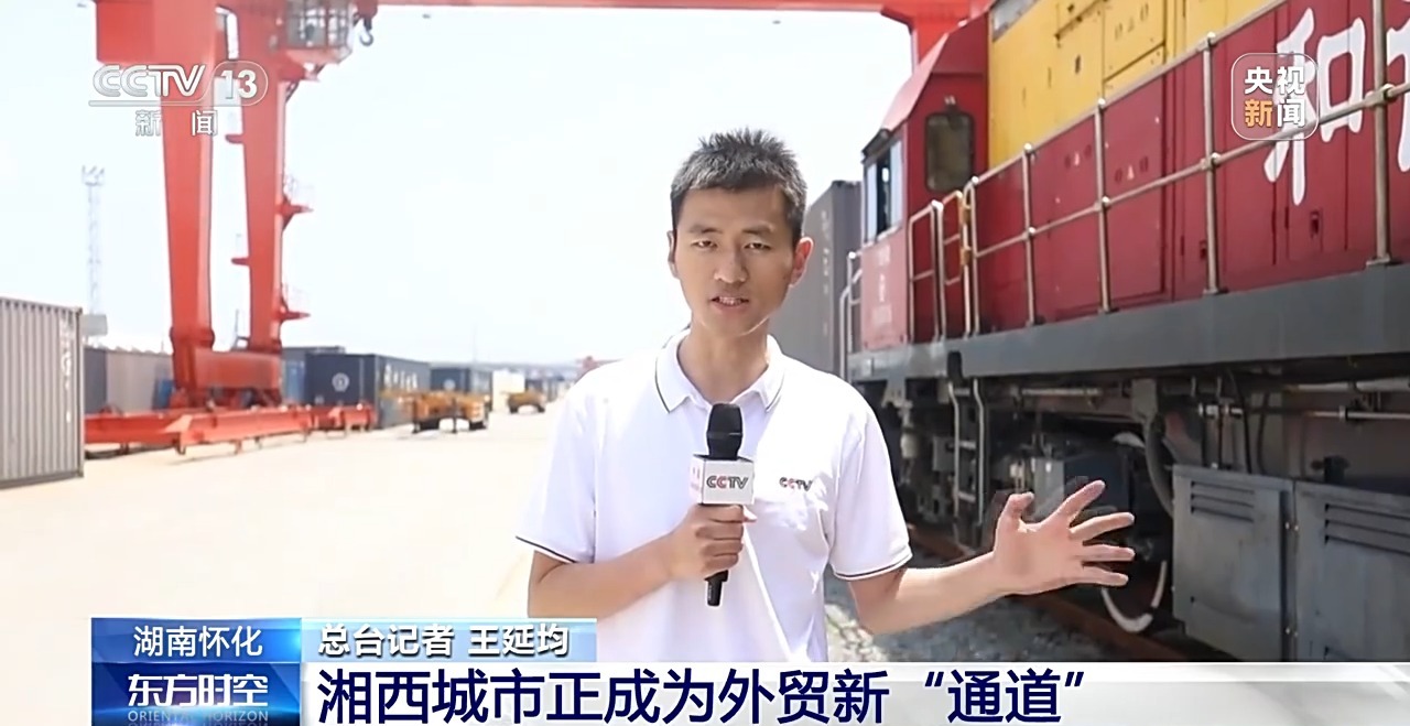 記者走進(jìn)懷化國際陸港,這里正一片忙碌,龍門吊起降不停,來自湘西南地區(qū)的貨物在這里轉(zhuǎn)運,一節(jié)節(jié)裝好的貨箱被運至專列,即將發(fā)往海外。