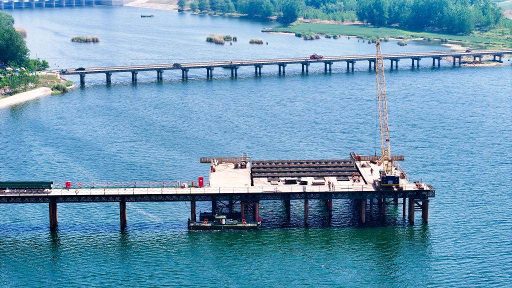 國家重點項目濰(坊)宿(遷)高速鐵路項目承建方正搶抓工期與節(jié)點,穩(wěn)步推進標段施工。4月30日,在濰宿高鐵山東郯城段,中鐵上海局的工作人員在進行沭河特大橋施工(無人機照片)。新華社記者 郭緒雷 攝
