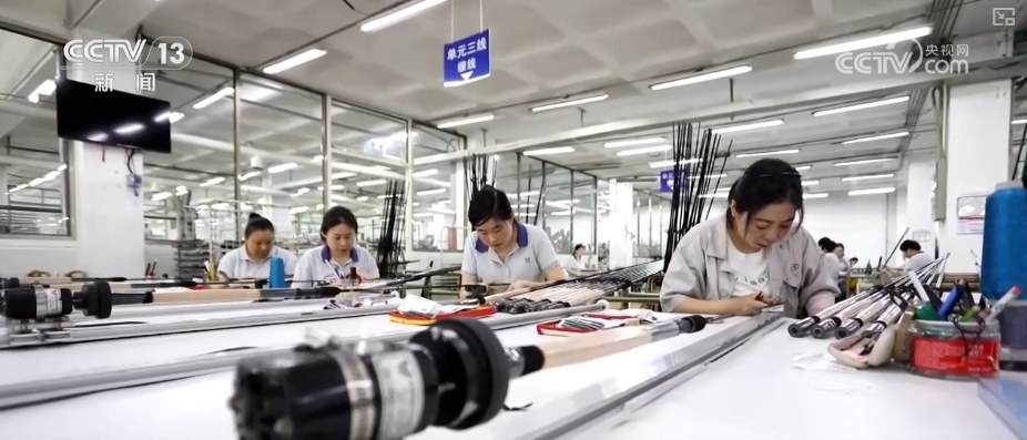 山東威海的釣具早已蜚聲海外,這里聚集了近5000家釣具生產(chǎn)及貿(mào)易企業(yè),包攬了全球六成魚竿市場(chǎng)份額。在這家規(guī)模較大的生產(chǎn)企業(yè)里,碳纖維魚竿從自動(dòng)流水線魚貫而下,即將發(fā)往歐洲市場(chǎng)。2025年以來(lái),企業(yè)出口額達(dá)2.1億元,同比增長(zhǎng)27%。
