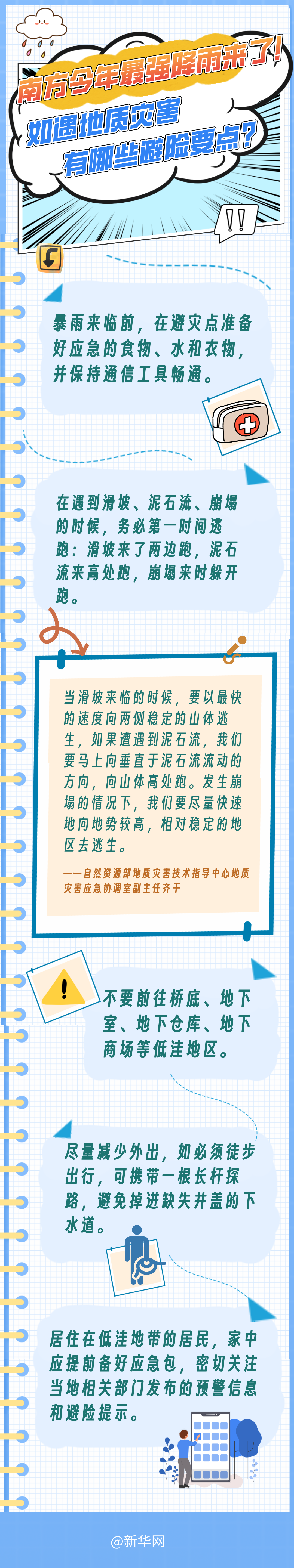 中央氣象臺消息,預(yù)計5月27日至29日,我國南方將出現(xiàn)今年以來最強(qiáng)降雨過程,并與前期強(qiáng)降雨區(qū)高度疊加,暴雨災(zāi)害風(fēng)險高。新一輪強(qiáng)降雨過程范圍廣、累計降水量大,地質(zhì)災(zāi)害風(fēng)險不容忽視。強(qiáng)降雨可能引發(fā)哪些地質(zhì)災(zāi)害?地質(zhì)災(zāi)害發(fā)生前,有哪些征兆?如遇地質(zhì)災(zāi)害,有哪些避險要點?