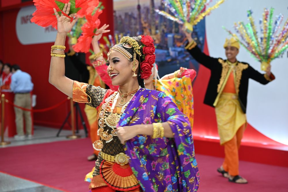 5月27日,馬來(lái)西亞參展人員在展會(huì)現(xiàn)場(chǎng)為觀眾帶來(lái)傳統(tǒng)舞蹈表演。新華社記者 陳愛(ài)平 攝