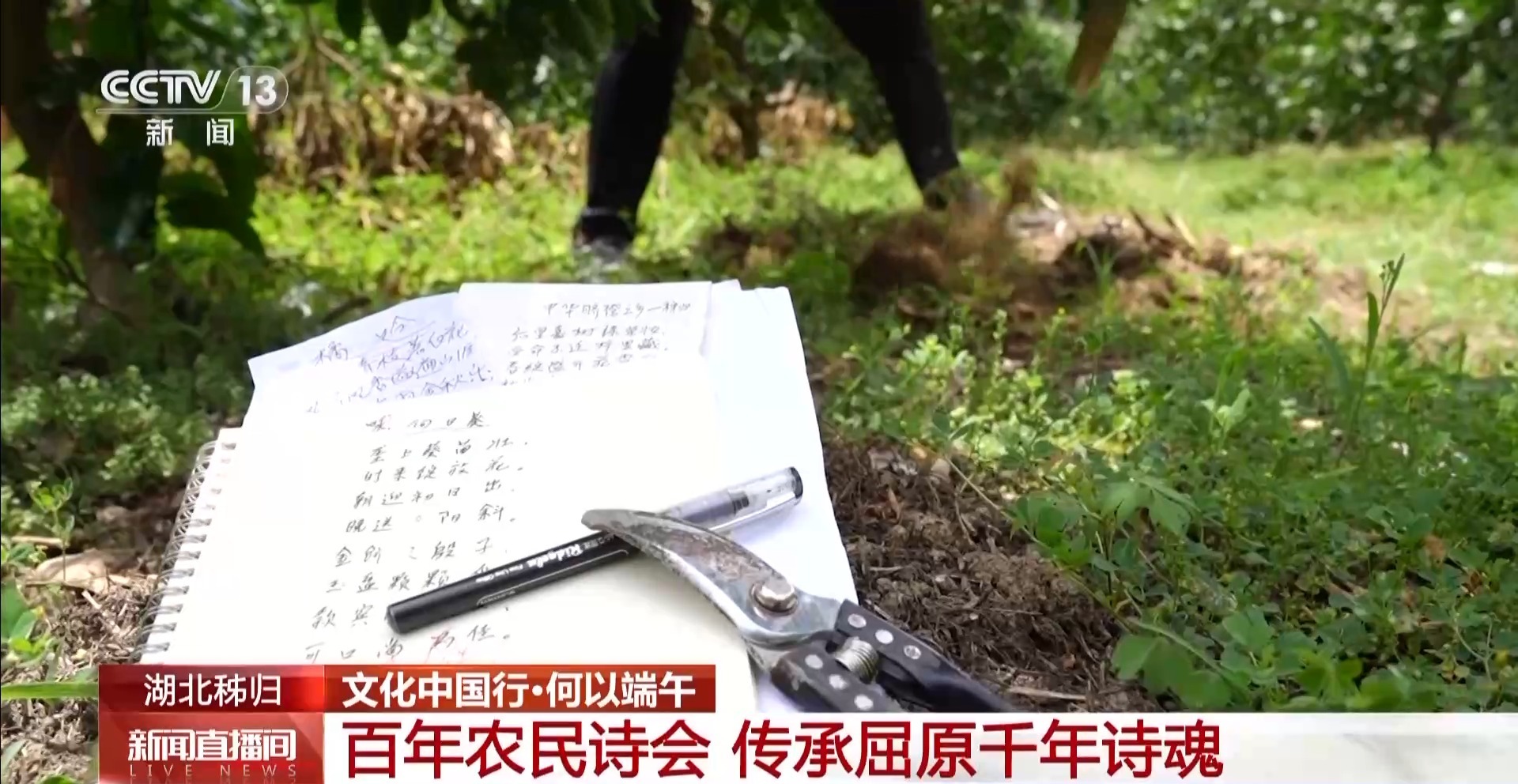 承襲千年詩(shī)風(fēng),傳承屈原精神,詩(shī)社成員不僅吟唱詩(shī)歌,還作詩(shī)。對(duì)于這些農(nóng)民詩(shī)人們來(lái)說(shuō),每天一手鋤頭、一手詩(shī)歌,是大家平日的寫(xiě)照。今年75歲的黃家兆,60歲時(shí)加入詩(shī)社,并學(xué)習(xí)作詩(shī)。僅靠著老社員的口授,初中文化的他硬是背下了百余個(gè)詩(shī)詞格律。有時(shí)在田間靈感來(lái)了,順手撿來(lái)的廢紙都可以成為他寫(xiě)詩(shī)的地方。十幾年來(lái),黃家兆共創(chuàng)作了一百二十多首詩(shī)歌。田間的橙子,林中的啄木鳥(niǎo),四季的勞作,豐收的時(shí)刻,一首首詩(shī)歌記錄著恬靜的歲月,更記錄著為美好生活的奮斗。