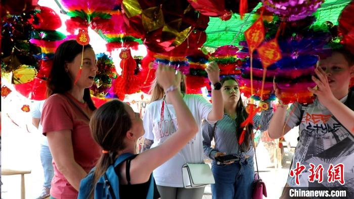 山腳下熱鬧的端午市集格外引人注目,琳瑯滿目的五彩繩、香包和手工飾品讓俄羅斯游客流連忘返,大家紛紛試戴購(gòu)買(mǎi),感受著濃厚的節(jié)日氛圍。