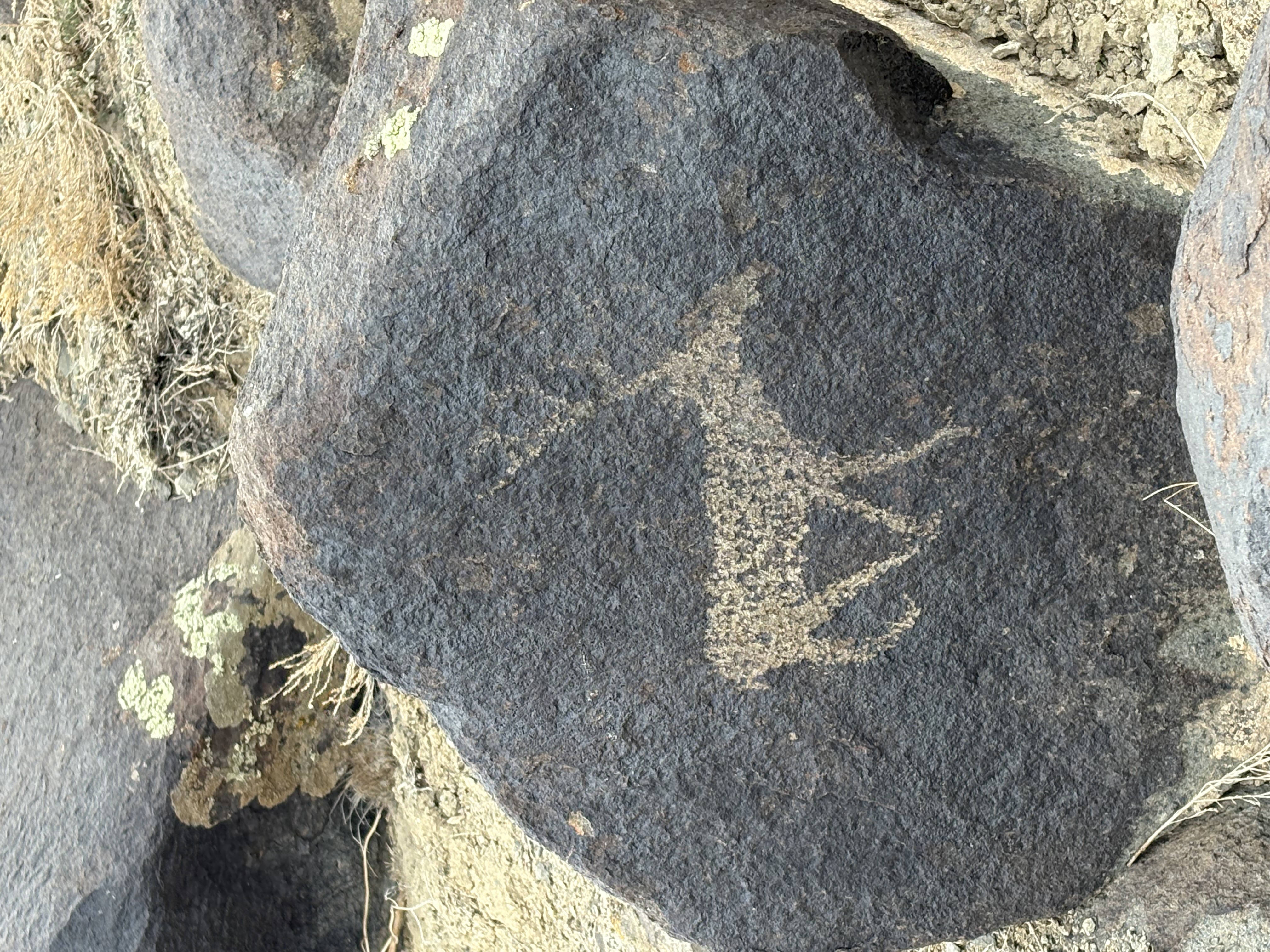 無獨有偶,在第四次全國文物普查中,除博州外,阿勒泰地區(qū)、哈密市也有巖畫新發(fā)現(xiàn)。4月,青河縣的吾勒肯布勒合巖畫被列入“四普”新發(fā)現(xiàn)。60幅以點線鑿刻的巖畫清晰可辨,既有生動的狩獵場景,也有古人對生命繁衍的崇拜。其中,鹿、駱駝、馬等十余種動物栩栩如生,夸張的鹿角極具藝術(shù)感染力。
