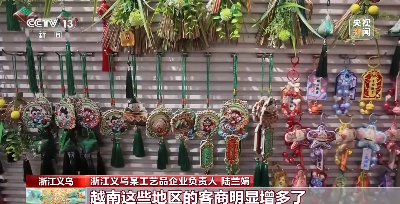 浙江義烏某工藝品企業(yè)負(fù)責(zé)人 陸蘭娟:以前香囊的消費(fèi)群體以國內(nèi)為主,這兩年,越來越多的外國客商來咨詢。前年賣出了15萬個左右,去年訂單翻了一番,有30萬個。那今年的訂單也明顯超過了過去,尤其是新加坡、馬來西亞、越南這些地區(qū)的客商明顯增多。