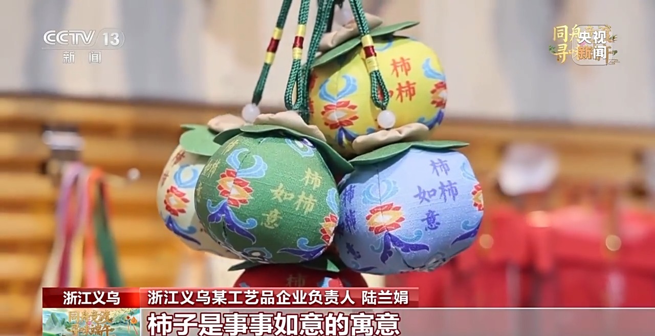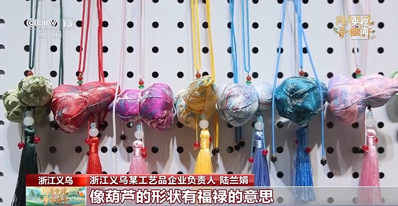 義烏某工藝品企業(yè)負(fù)責(zé)人 陸蘭娟:今年,在香囊的外觀設(shè)計上面,我們結(jié)合了中國傳統(tǒng)節(jié)日祝福的元素,設(shè)計了立體葫蘆、柿子等款式。像葫蘆的形狀有福祿的意思;柿子有事事如意的寓意,都是今年的“爆款”。