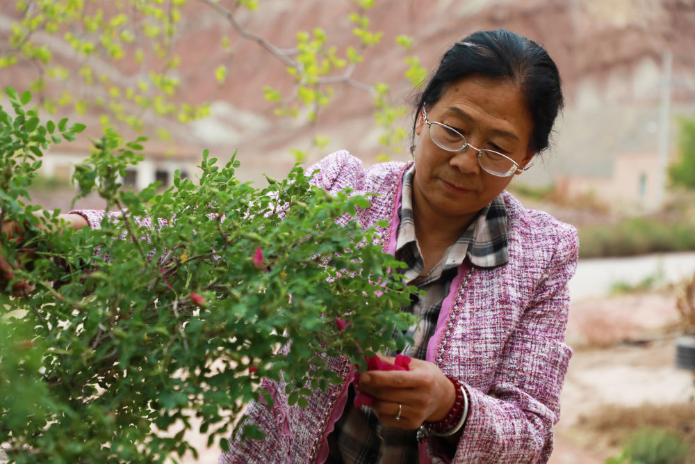 房前屋后、田間地頭的苦水玫瑰,早就嵌入了當(dāng)?shù)匕傩盏纳?。每年花開時(shí)節(jié),婦女們便會(huì)提籃挎篼、采摘花瓣,然后釀制成香甜可口的玫瑰醬,作為逢年過節(jié)蒸花卷、烙鍋盔的上好佐料。