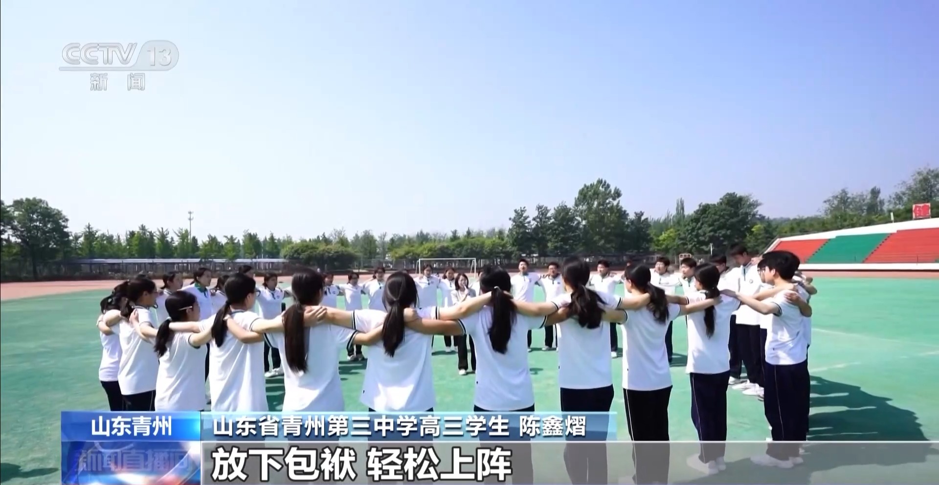 在山東青州第三中學(xué)的操場(chǎng)上,一場(chǎng)專為高三學(xué)生設(shè)計(jì)的心理輔導(dǎo)活動(dòng)正在進(jìn)行?!巴米游琛薄笆掷帧薄昂白邏毫Α钡热の痘顒?dòng),讓學(xué)生們?cè)跉g聲笑語中釋放焦慮。