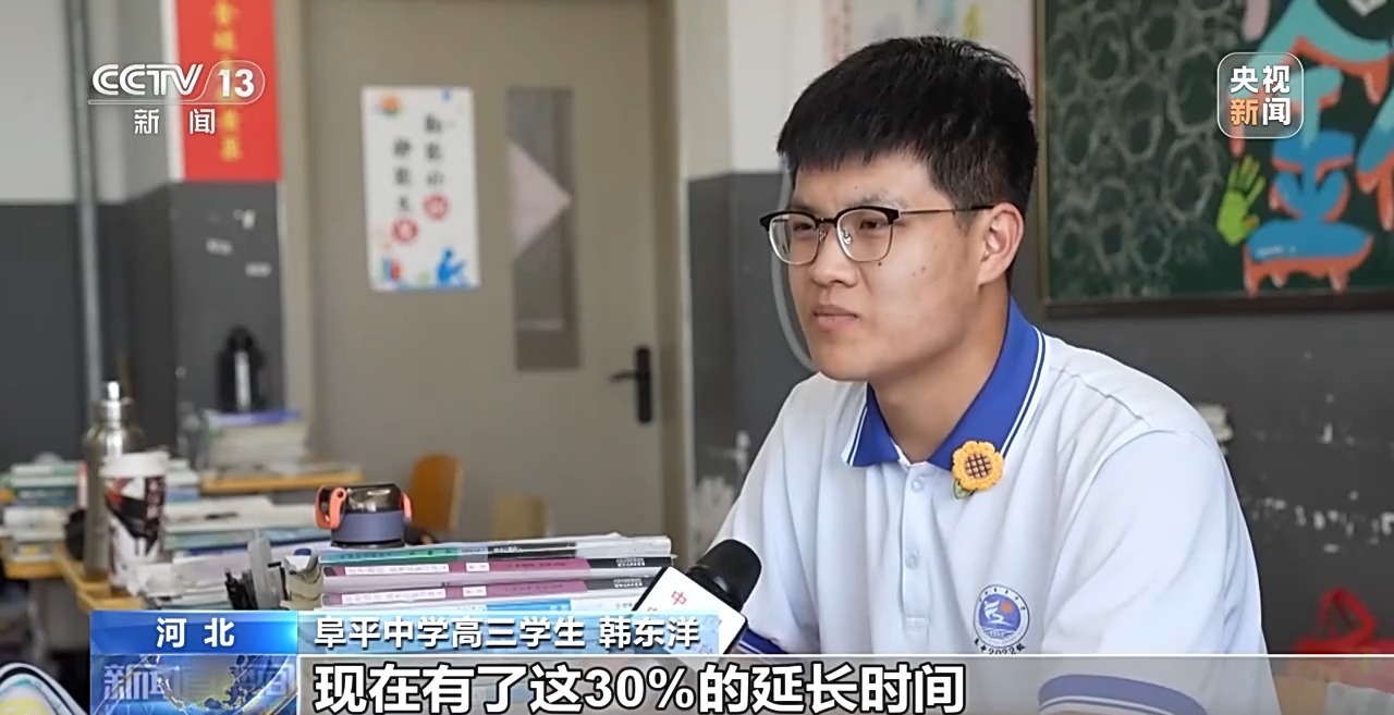 阜平中學(xué)高三學(xué)生 韓東洋:正常人他們寫300字左右,我大概才能寫200多字,就比如說語文,平常模擬考試的時候,大概還有個二三百或三四百字就寫不完,現(xiàn)在有了這30%的延長時間,心里就比較踏實了。
