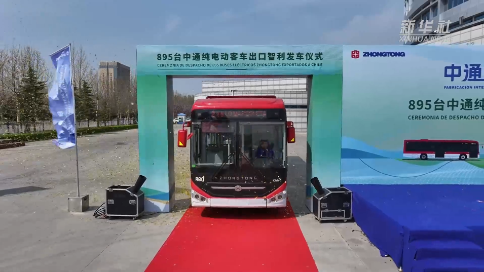895臺(tái)中通純電動(dòng)客車出口智利發(fā)車儀式。新華社記者 朱曉光 攝