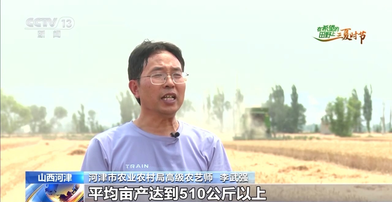 河津市農(nóng)業(yè)農(nóng)村局高級農(nóng)藝師 李武強:示范基地的小麥估計一周左右全部收完,平均畝產(chǎn)達(dá)到510公斤以上,較去年增產(chǎn)8%。下一步,將持續(xù)加大實用技術(shù)應(yīng)用,努力實現(xiàn)‘收到手’到‘收得好’轉(zhuǎn)變。