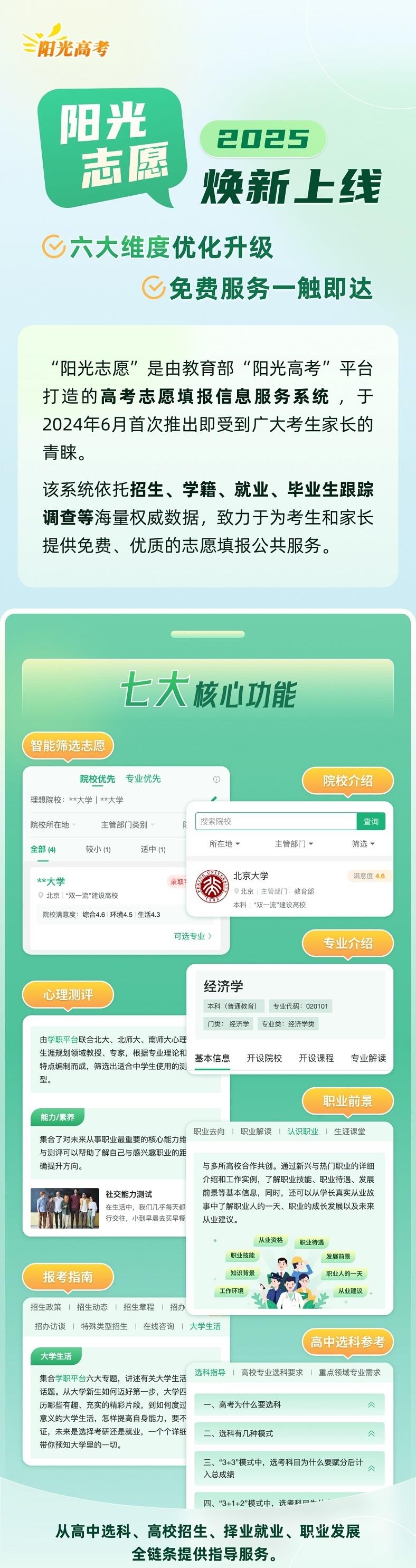 2025年,“陽光志愿”實現(xiàn)6大維度優(yōu)化升級,更好服務(wù)考生家長科學(xué)決策。