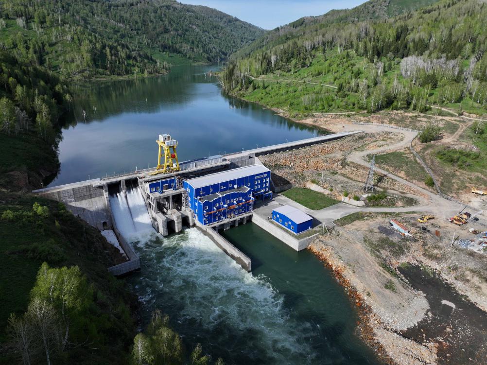 這是5月8日在哈薩克斯坦東哈州拍攝的圖爾古孫水電站(無人機(jī)照片)。 新華社記者李任滋攝