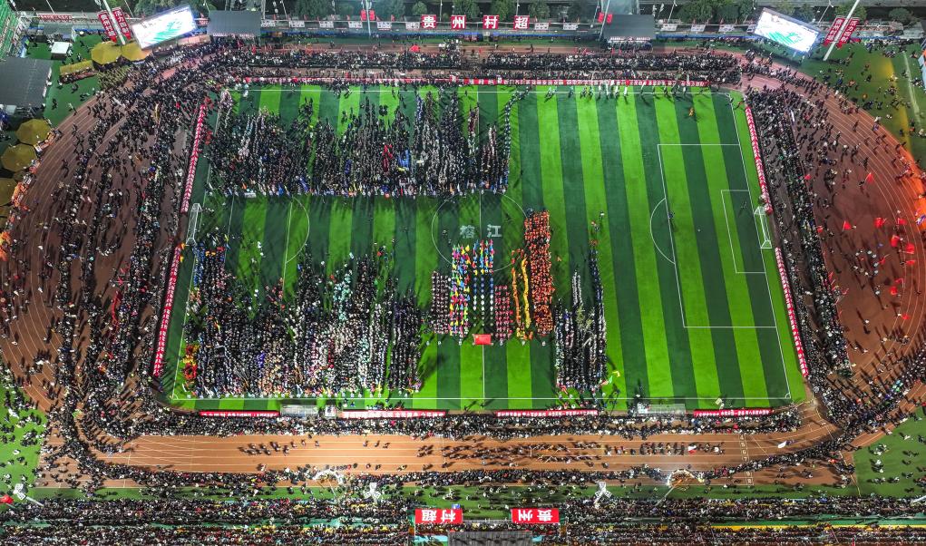 這是2025年貴州“村超”開(kāi)幕式現(xiàn)場(chǎng)(無(wú)人機(jī)照片)。新華社記者 楊文斌 攝